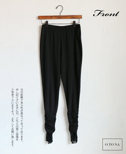 【再入荷9月4日10時より】 (ブラック)脚元から華やぎをレース&ギャザー レギンス9/12×メール便不可★★