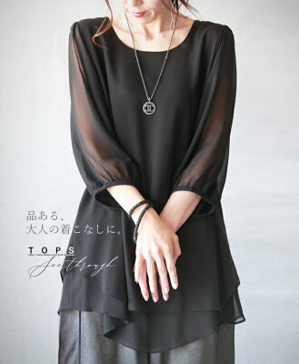 【再入荷8月24日20時より】 トップス ブラウス レディース ブラック 春 夏 七分袖 袖コンシャス 無地 透け感 落ち感 シフォン調 薄手 ゆったり 体型カバー おしゃれ きれいめ 品ある、大人の着こなしに 10/8