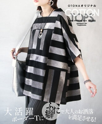 【再入荷8月24日20時より】 OTONAオリジナル Tシャツ レディース 春 夏 秋 ボーダー グレー 綿100 5分袖 涼しい タイダイ 体型カバー カジュアル お洒落 可愛い 個性的 大活躍ボーダーTにふた癖で大人のお洒落を満足させる! 6/25