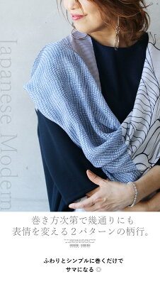 【再入荷9月4日10時より】 スカーフ。モダン。和柄。ネイビー。2パターンの柄行きで魅せる、Japanese Modern。6/3〇メール便可