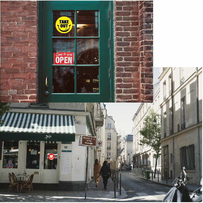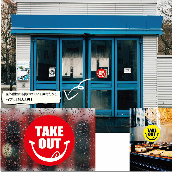 テイクアウト ステッカー【にこちゃんマーク】かわいい! TAKEOUT 看板 おもちかえり できます カフェ パン屋 ファストフード 屋外耐久 20cm丸形 店舗 コロナ対策 ピクニック お弁当 お寿司 ハンバーガー