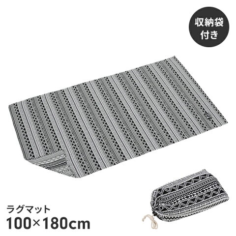 ラグマット キャンプ テント フロアマット レジャーシート ラグ 100×180cm 収納袋付き アウトドア ジオメトリック ブラック