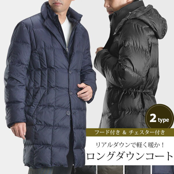 スーツの上から羽織りやすい、軽く暖かなダウンコート!ドローコード内蔵でスッキリと着こなせるフード付きのAタイプと、 レイヤードスタイルが楽しめる前立て付きチェスターコートデザインのBタイプの2種類からお選びいただけます。