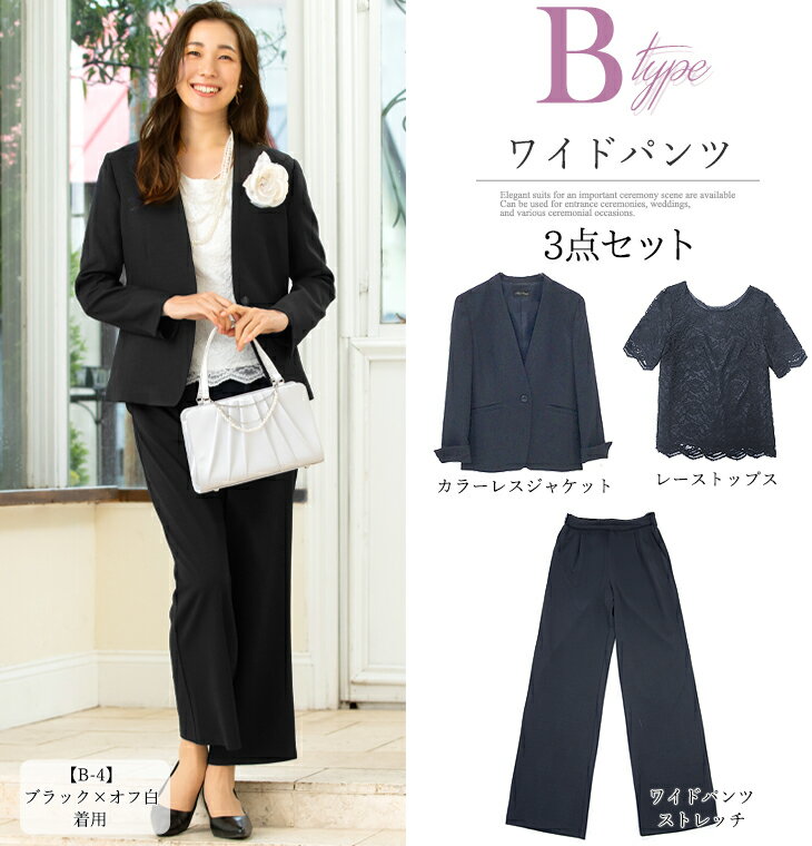 ゆったりとしたABR体あり カラー ベージュ・ネイビー(紺色)・ブラック(黒) トップスはオフホワイト(オフ白)もあり 用途 入学式や入園式、卒業式や卒園式はもちろん、七五三・お宮参りなどフォーマルな装いがおすすめのシーンにぴったり。