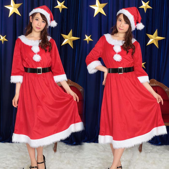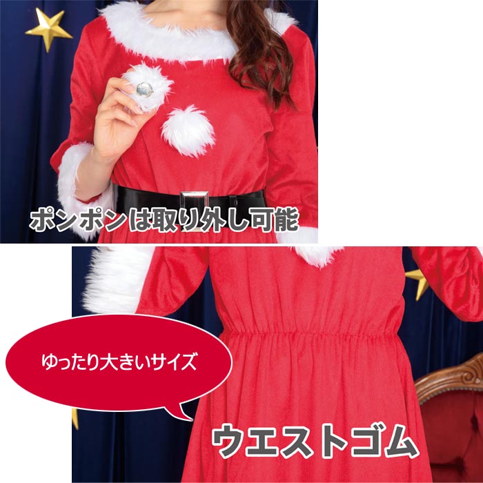 ≪ゆったり大きいサイズ≫ポンポンロングサンタロング丈で着やすいサンタコスチューム。