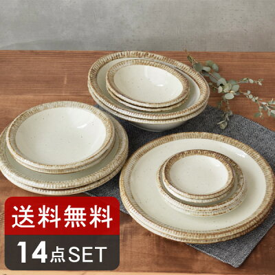 福袋 和食器 食器セット 送料無料 渕錆粉引セット(7種類2つずつ)大皿 スープボウル 小皿 おしゃれ カフェ食器セット 和食器セット プレゼント ギフト 美濃焼 食器 ギフトセット 人気セット 送料込 カフェ風