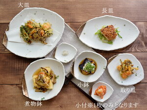 セット内容 【大皿】×1【長皿】×1【取り皿】×1【煮物鉢】×1【小鉢】×1【小付け】×1 各1点 合計6点 商品詳細 【大皿】サイズ/約 29.8×23.8×高さ4cm 重さ/約760g(商品により誤差があります) 【長皿】サイズ/約 29.7×16×高さ2.8cm 重さ/約500g(商品により誤差があります) 【取り皿】サイズ/約 18×15×高さ2.7cm 重さ/約260g(商品により誤差があります) 【煮物鉢】サイズ/約 21.5×18×高さ5cm 重さ/約410g(商品により誤差があります) 容量/約 4200cc 【小鉢】サイズ/約 16.5×14×高さ5cm 重さ/約280g(商品により誤差があります) 容量/約 250cc 【小付】サイズ/約 11×9.5×高さ2.5cm 重さ/約90g(商品により誤差があります) 容量/約 30cc 素材/磁器 質感/つややか 生産地/日本(美濃焼) 電子レンジ、食器洗い機使用可 オーブン(直火)不可 ※サイズは全て外寸になります。