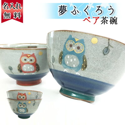 名入れ お茶碗 ペア おしゃれ 茶碗 和食器セット 名前入り かわいい 夫婦茶碗 名入れ 両親 記念 記念品 記念日 夫婦 ペアギフト 長寿 祝い 贈り物 ギフト 梟 雑貨 夢ふくろう 有田焼 名入れ茶碗 ペアセット プレゼント 結婚 周年