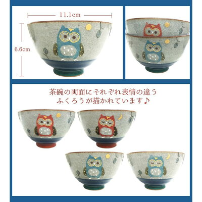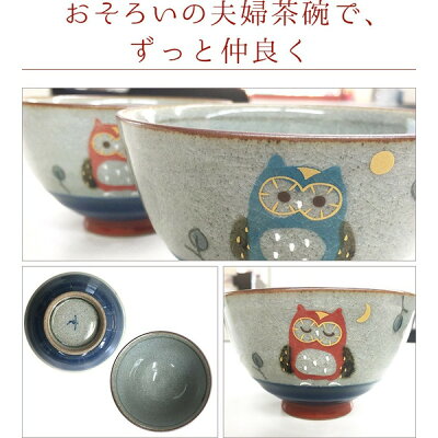 可愛いふくろうが描かれた癒やしの夫婦茶碗です。