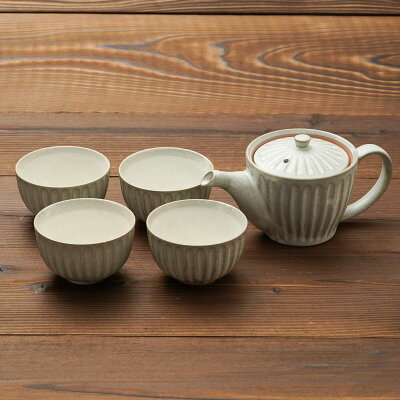 ポット茶器セット 粉引グレー 菊型 ティーポット1点 湯呑み4点 おしゃれ 日本製 和食器セット 美濃焼 陶器 急須 茶器 お茶 ギフトセット