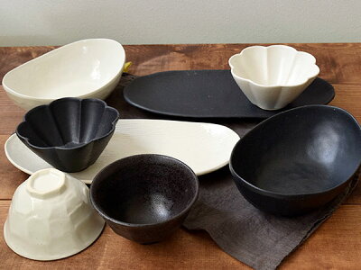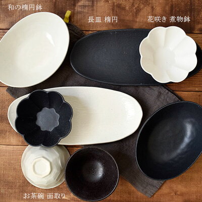 これだけあれば、どんなメニューにも対応できるので安心して、新生活がスタートできます! セット内容 【minorubaシリーズ】 和の楕円鉢、長皿 楕円、花咲き煮物鉢、お茶碗面取り 各2点 合計8点 商品詳細 【和の楕円鉢】サイズ/19.6×14.3×高さ7.2cm 重さ/約433g(商品により誤差があります) 容量/約700cc(満水) 質感/マット 【長皿 楕円】サイズ/31×13.5×高さ3cm 重さ/約415g(商品により誤差があります) 質感/マット 【花咲き煮物鉢】サイズ/口径13×高さ6.5cm 重さ/約215g(商品により誤差があります) 容量/約300cc(満水) 質感/マット 【お茶碗面取り】サイズ/約 口径12×高さ6.8cm 重さ/約200g(商品により誤差があります) 容量/約330cc 質感/粉引:つややか、黒:マット 素材/陶器 生産地/日本(美濃焼) 電子レンジ、食器洗い機使用可 オーブン(直火)不可 ※サイズは全て外寸になります。