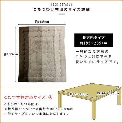 丸洗いできていつも清潔、届いてすぐに使えるコタツ掛け布団です。
