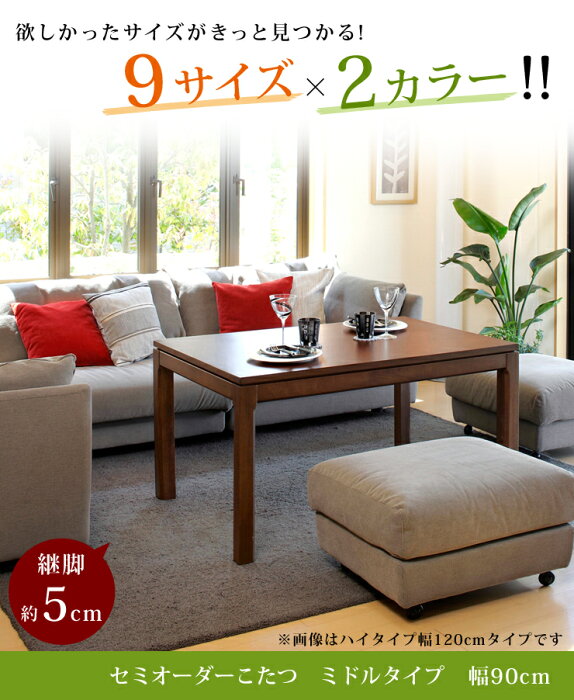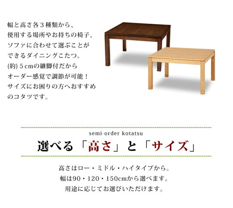 お買い物ガイド 落ち着いた雰囲気と重厚感が空間に暖かみを与えるセミオーダーこたつ!高さ・サイズが豊富に揃っているので、用途に応じて好きなタイプをお選び下さい。