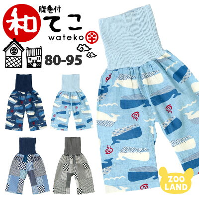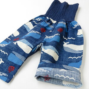 子供 腹巻付 和テコ 男の子 (80-95cm)▽ 【綿100%】子供服 ステテコ 甚平 パンツ じんべい キッズ ベビー 男児 夏祭り 花火大会 お盆 部屋着 寝間着 和装 総柄 かわいい 涼しい くじら 日本紋様 80cm 90cm 95cm▽ ポイント消化