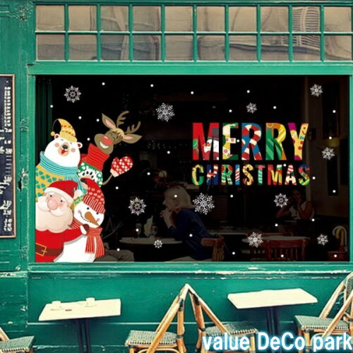 ウォールステッカー クリスマス サンタ トナカイ 雪だるま ステッカー クリスマスツリー サンタクロース ガラス 飾り 装飾 窓 かわいい ウオールステッカー 壁 壁紙 リース リーフ 白くま ベル 鐘 雪の結晶 赤 緑 鹿 お祝い 店 玄関 出入口 christmas ウィンドウ ボール
