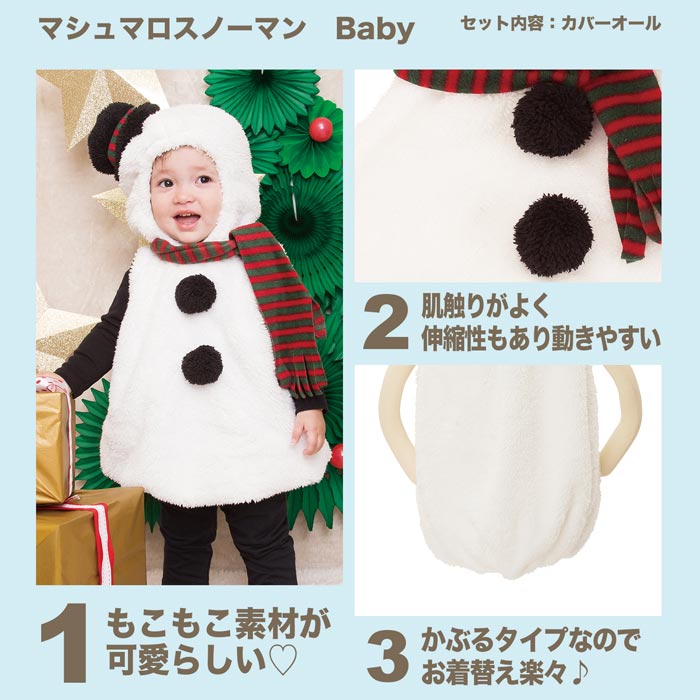 ≪Costume/Halloween≫マシュマロ スノーマン ベビーもこもこ素材が可愛らしい。