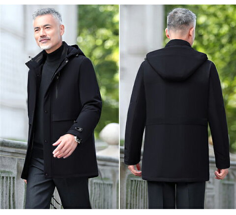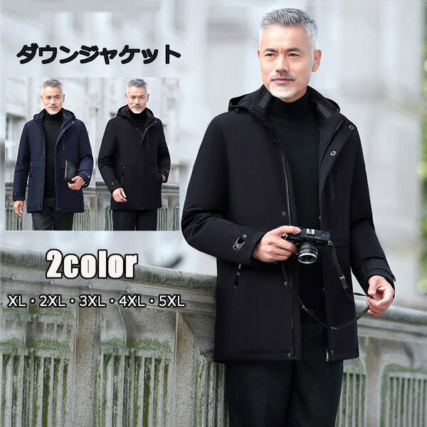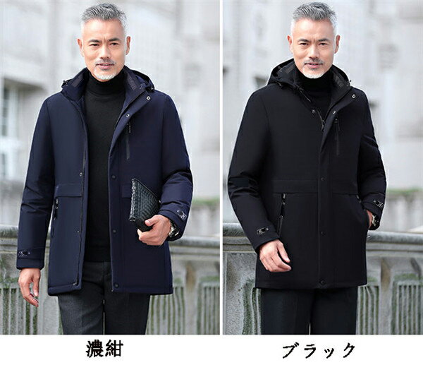 ダウンコート メンズ ダウンジャケット フード ハーフコート ビジネスコート 高品質 ダウン フェザー 黒 濃紺 eg170c0c0t2