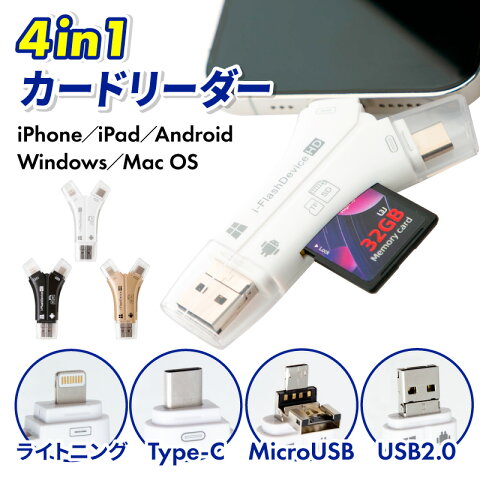 【楽天1位】【1TB対応】SDカードリーダー iPhone バックアップ マルチカードリーダー スマホ SD カードリーダー 高速 ノートパソコン カメラ カメラリーダー メモリー 音楽 4in1 type-c usbタイプc USB メモリTypeC microsd Lightning iPhone