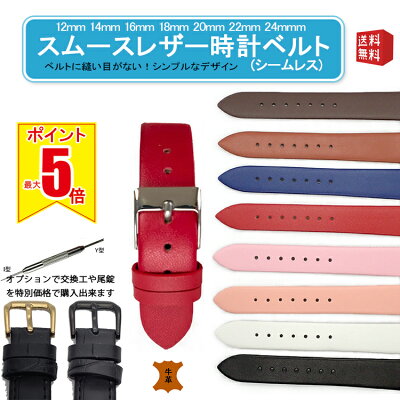 【楽天スーパーSALE 9月5日17時迄 \ポイント5倍/】時計ベルト 牛革 無地 シームレス スムース レザーバンド 12mm 14mm 16mm 18mm 20mm 22mm 24mm 交換用ベルト 腕時計 レザー 革ベルト 腕時計ベルト レディース メンズ バンド交換 時計ベルト交換 バネ棒付属 女性用 男性用