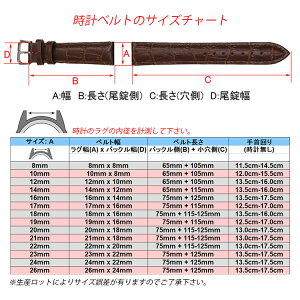全14サイズ 8ミリ 10ミリ 12ミリ 14ミリ 16ミリ 17ミリ 18ミリ 19ミリ 20ミリ 21ミリ 22ミリ 23ミリ 24ミリ 26ミリ ※ベルトのサイズは交換する時計のラグ幅の内径をお測り下さい。